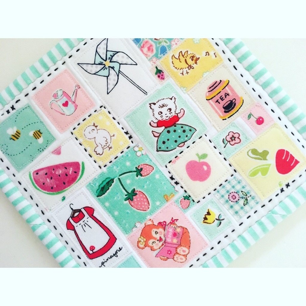 I also added some hand stitching around some of my little fussy cuts, as I just felt it needed something a little extra. And of course, some more stripy binding to finish it off, this time a sweet mint. I just can’t get enough of stripy binding!
