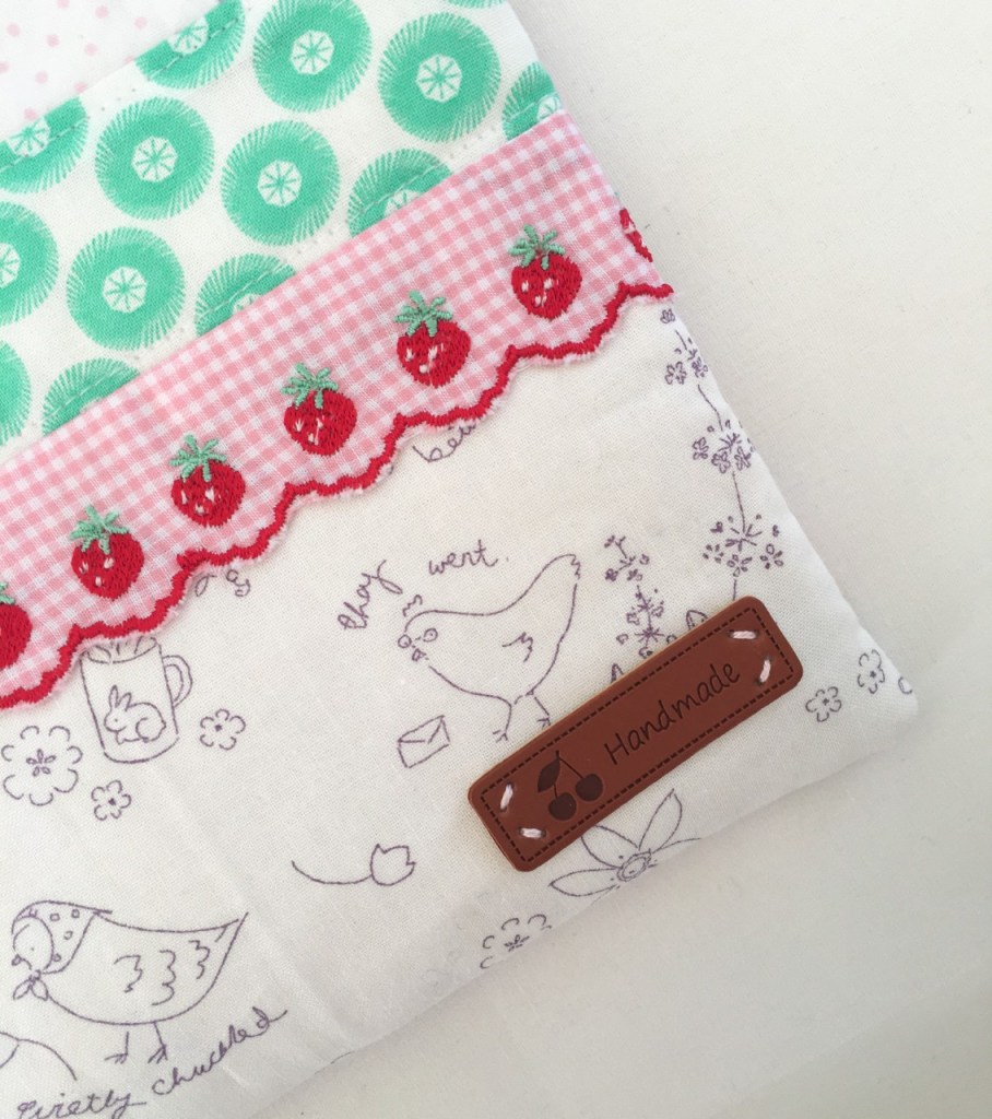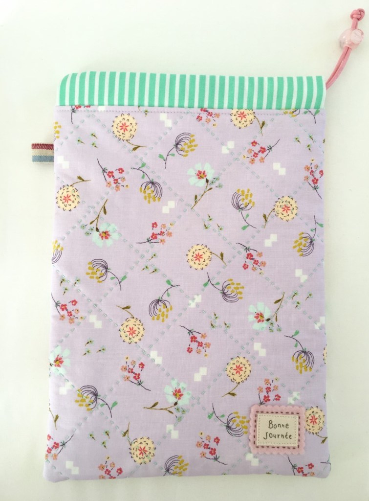 I really like using cord stoppers lately, so I added some pink wax cord and a sweet cloudy pink cord stopper for the pull, which I also got from Rose Garden patchwork. Lisa has some of the best trims.