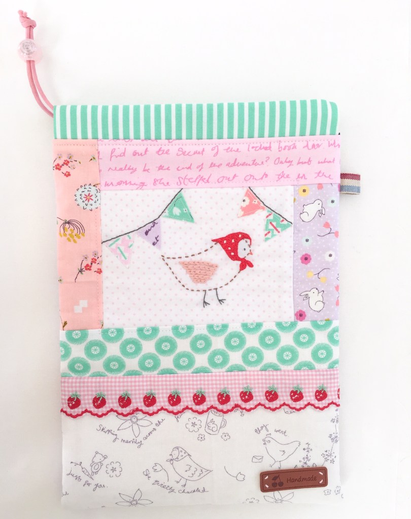 I started the stitchery with no idea what I was going to make and then one thing led to another and she slowly turned into a little drawstring pouch. I of course added the bunting first, then it all just went from there.