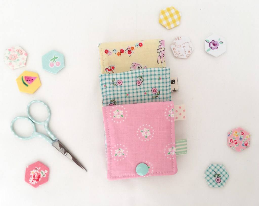 I wanted this little needle book to be secure so I decided a Kam snap closure would be the perfect finish. Quick and easy to install and they come in a range of pretty colours and shapes to choose from. Of course, you can still make these little needlebooks without Kam snap closures if you don’t have any. Or you could also try something else similar.