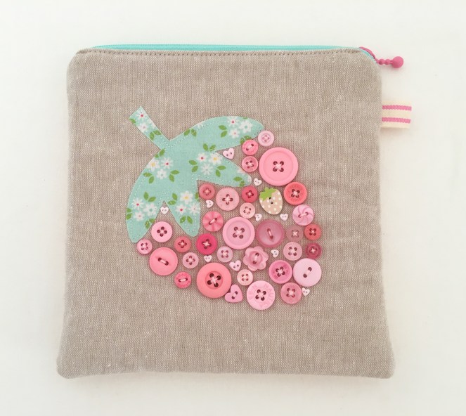 You now have a sweet button appliqué you can use to either make into a pouch like I have or use however you desire.