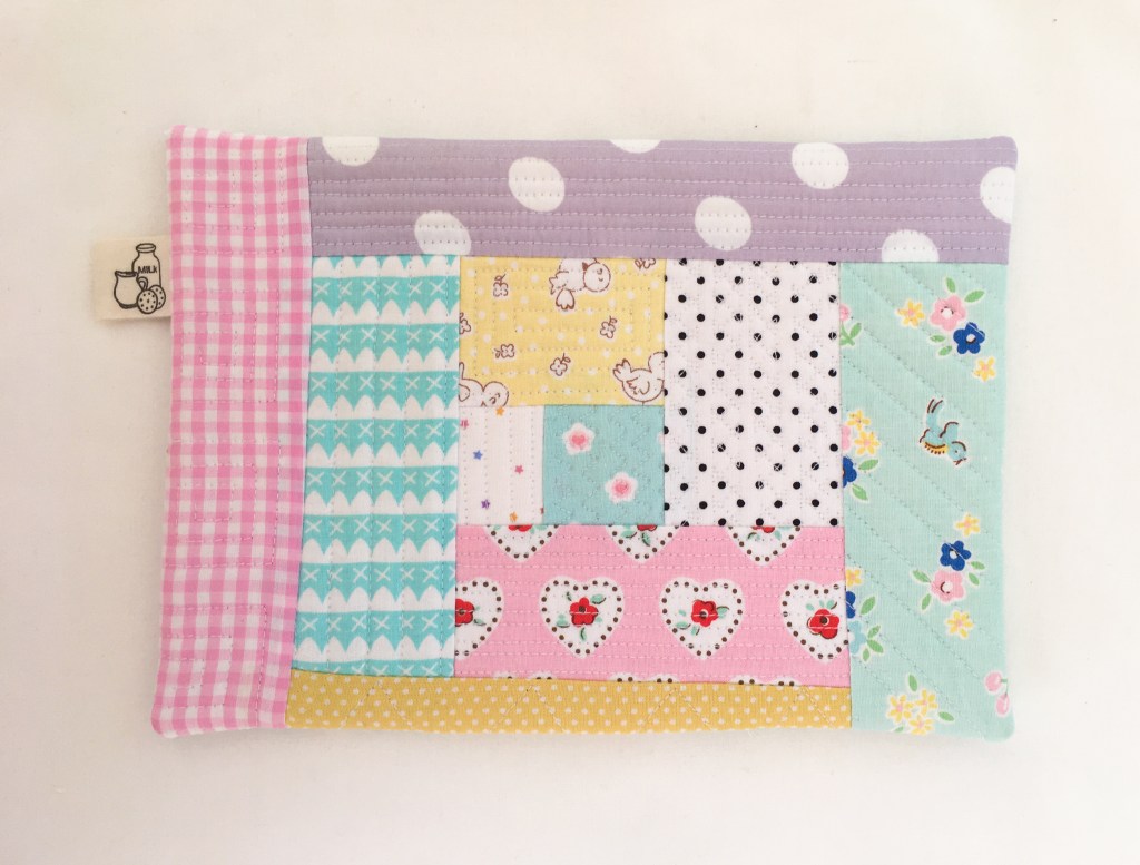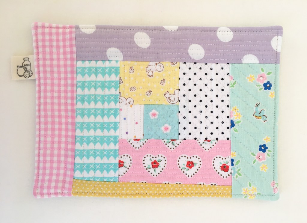 This quilt as you go mug rug is a great way to use up fabric scraps while making something useful in the process. Mug rugs make quick sweet gifts and are a great way to protect your furniture, while enjoying a sweet cup of tea or coffee and a treat or two. The technique used to construct this mug rug is completely beginner friendly, there is no binding to finish. It’s a great way to try out ‘Quilt as you go’ as well as experiment with different stitches and quilting techniques using your machine. Not to mention is the perfect scrap busting project for all those odd little pieces we love to hold onto.