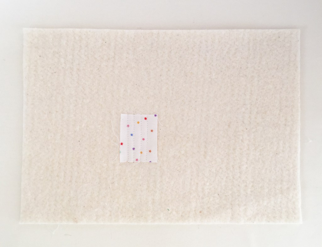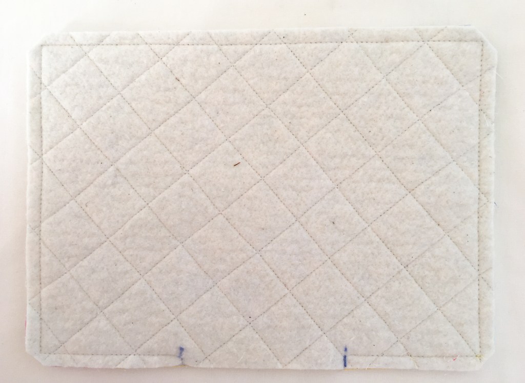 12. Adhere your backing fabric to the other piece of batting (7” x 10”) using quilt basting spray and following the manufacturer’s instructions. Quilt as desired and square it up and trim it to 6 ½” x 9 ½”.