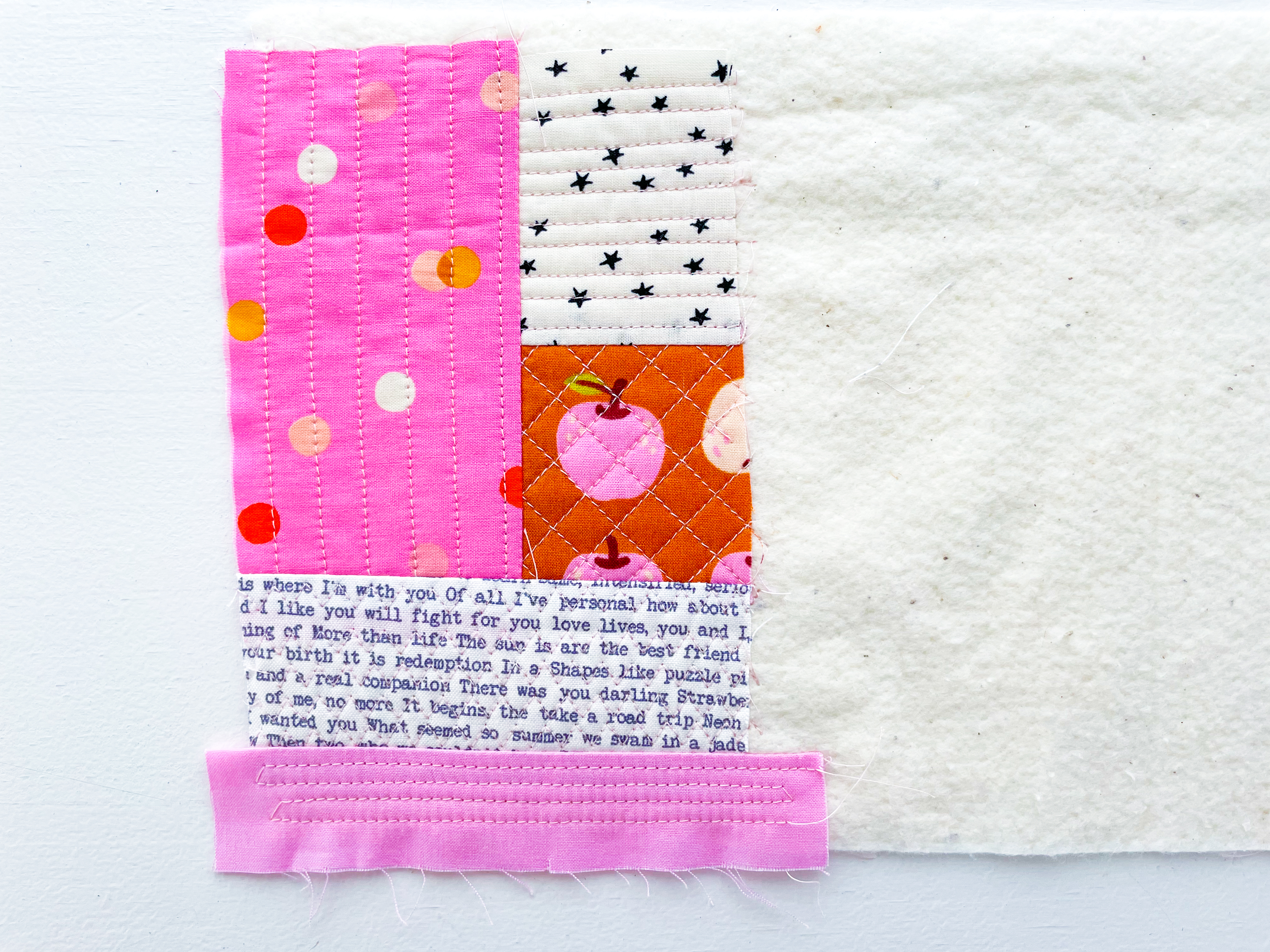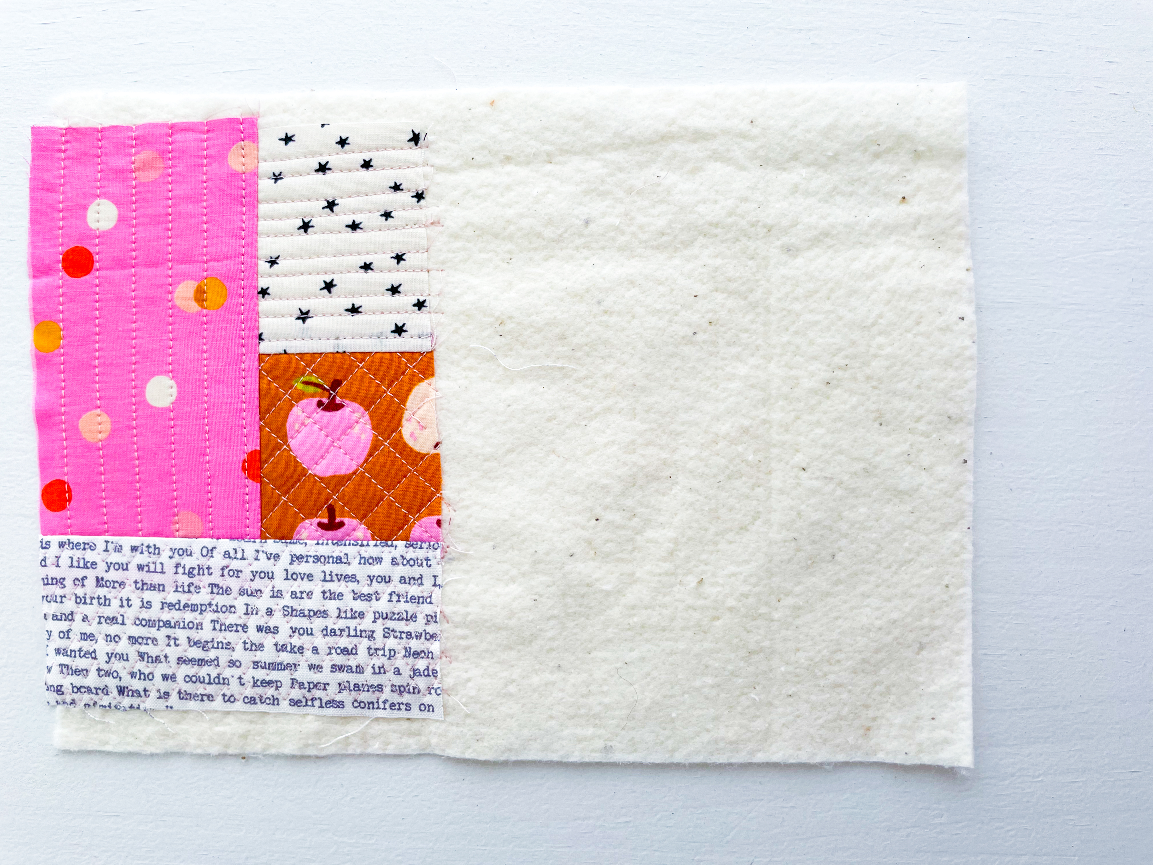 There are no strict rules with quilt-as-you-go, so feel free to experiment. The fun is in mixing shapes, colors, and textures while building your panel piece by piece.