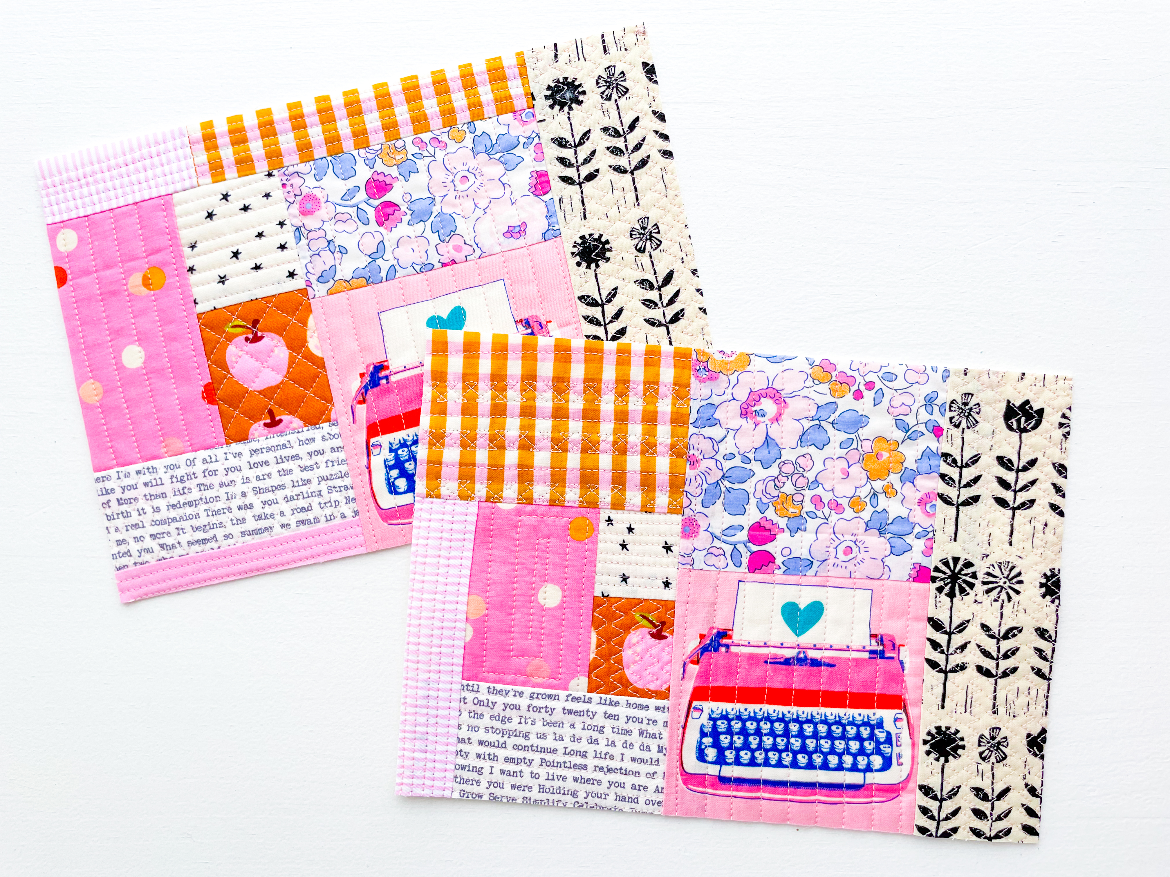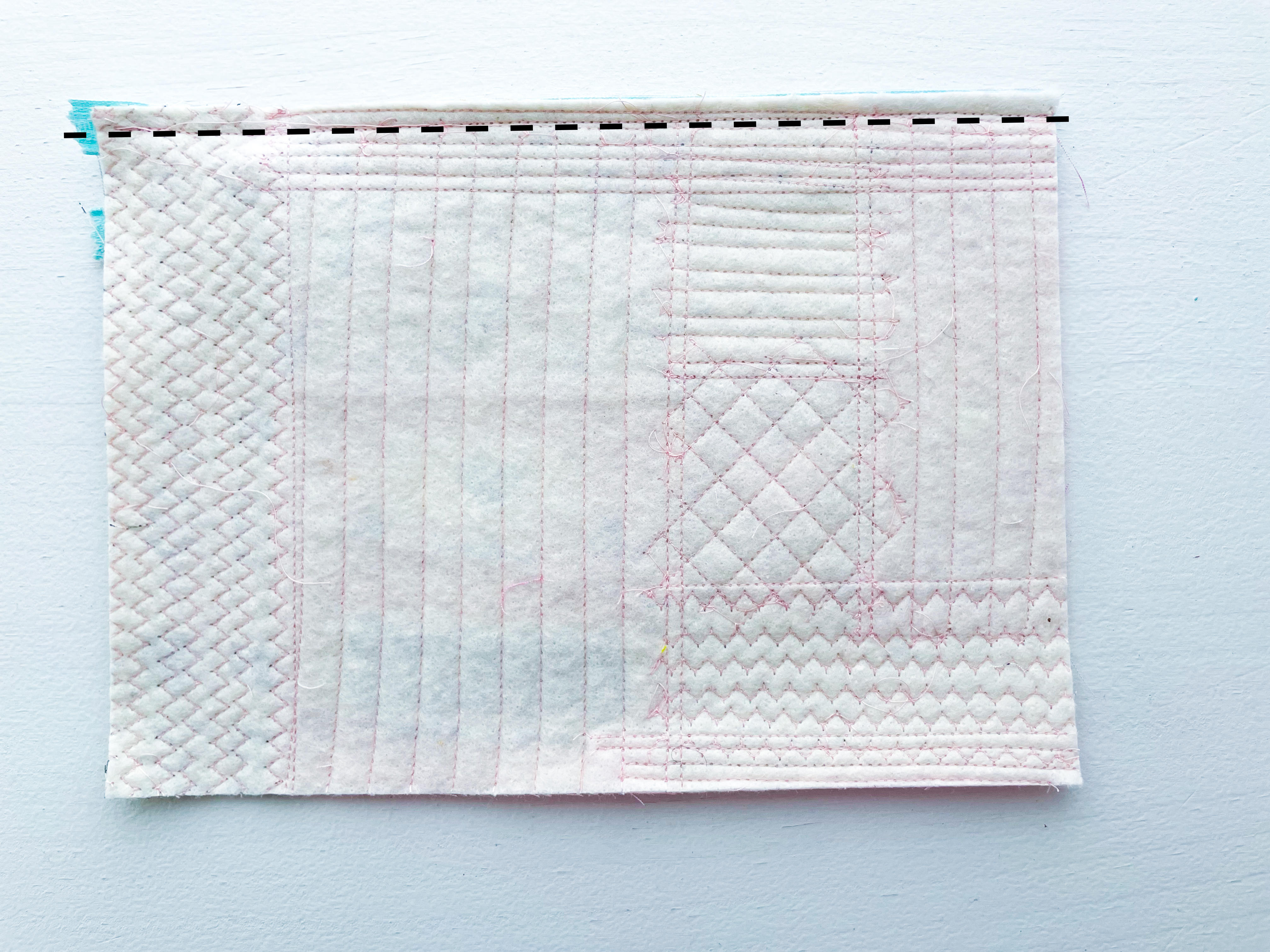 The quilt-as-you-go piecing technique used in this tutorial is beginner-friendly and a great introduction to quilting. You’ll quilt as you piece, meaning the layers are secured as you go — no large quilt sandwich to wrestle with and no complicated finishing. It’s a stress-free way to experiment with decorative stitches, quilting lines, and texture while building confidence.