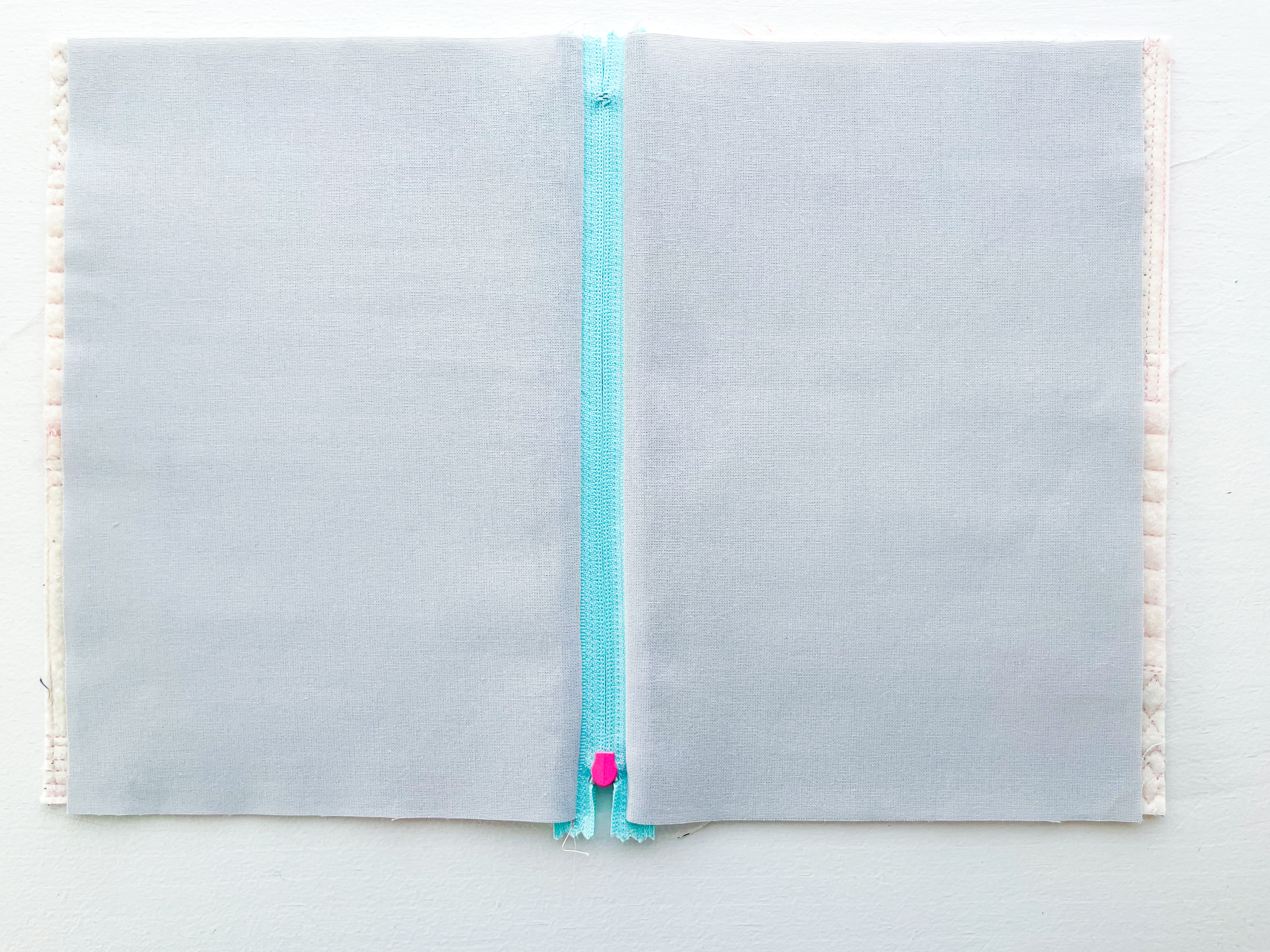 Repeat Steps 1–2 on the opposite side of the zipper using the remaining exterior panel and lining piece.