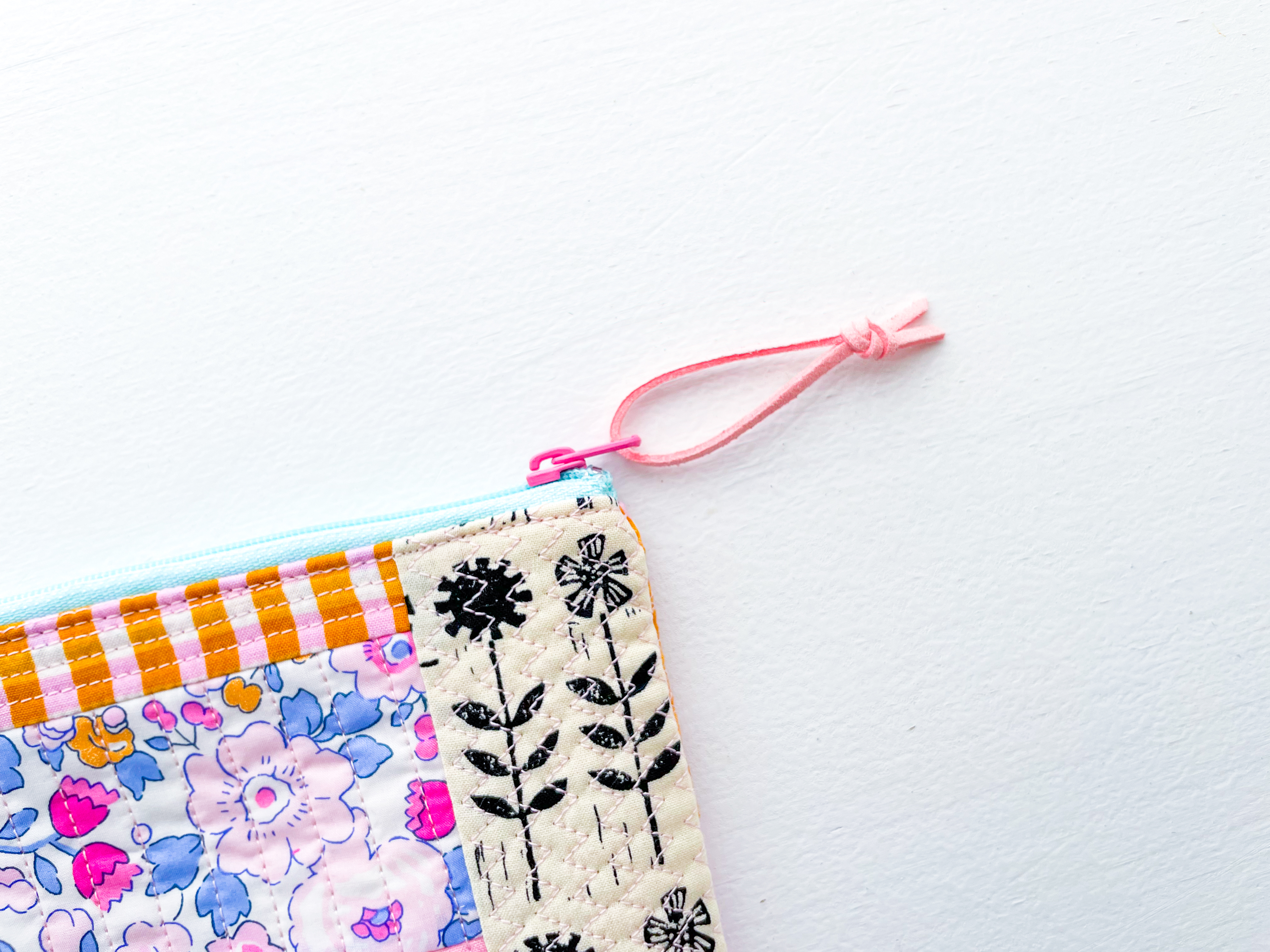 Ta-da! You’ve made a sweet quilt-as-you-go zipper pouch — perfect for storing all your favourite things.