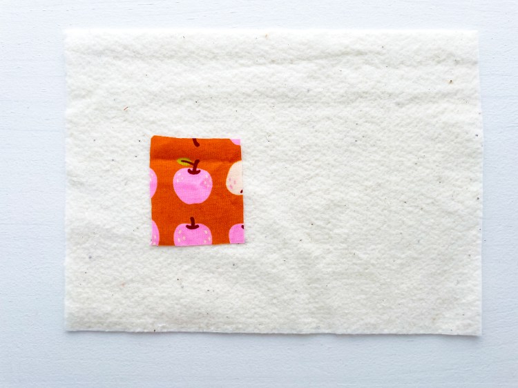 Select the fabric scraps you’d like to use for your quilt-as-you-go panel. They can be different sizes and even slightly odd shapes — just square them up with a quilting ruler as you go. Give everything a good press with a hot iron before you begin.