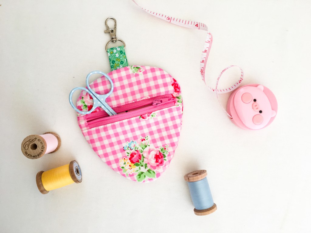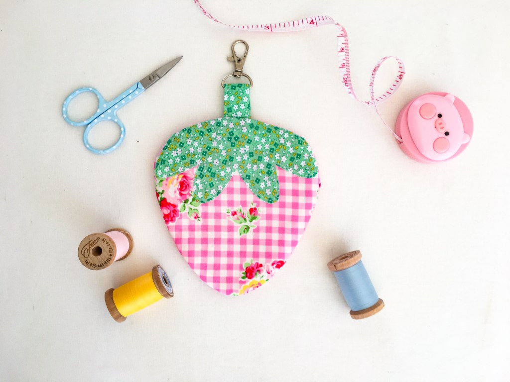 My sewing time has suffered greatly, but it’s amazing what you can do in 10-15 minutes here and there and this is what’s so great about small quick sewing projects, like my Strawberry Coin Purse. It’s a quick a simple pattern that can be made in an hour or in my case, small bursts of 10-15 minutes and still finished in a day.