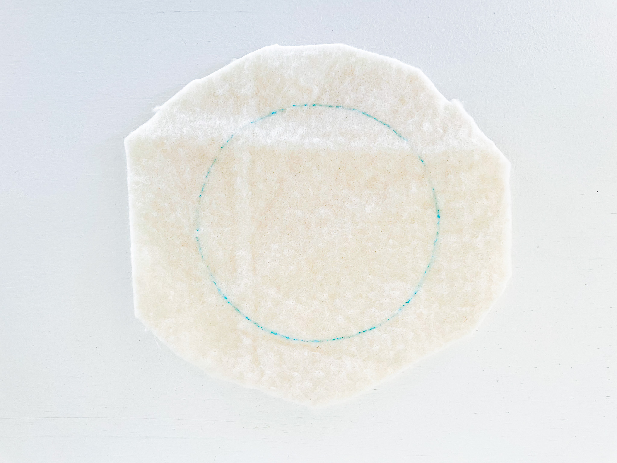 6. Trim your circle, leaving a ½” seam allowance around the edge. Don’t cut on the drawn line — measure ½” out from the outer edge of the circle to guide your trimming.