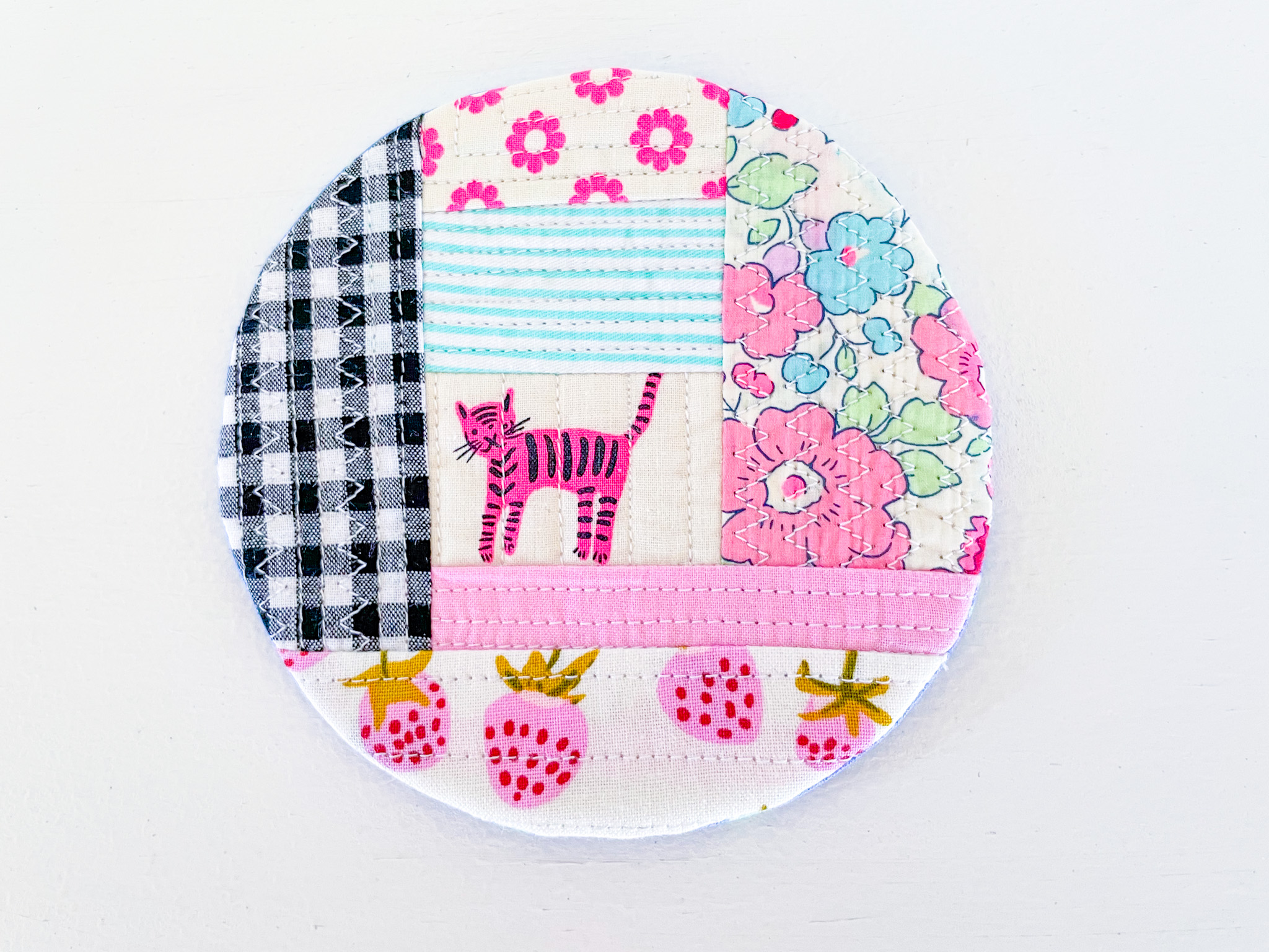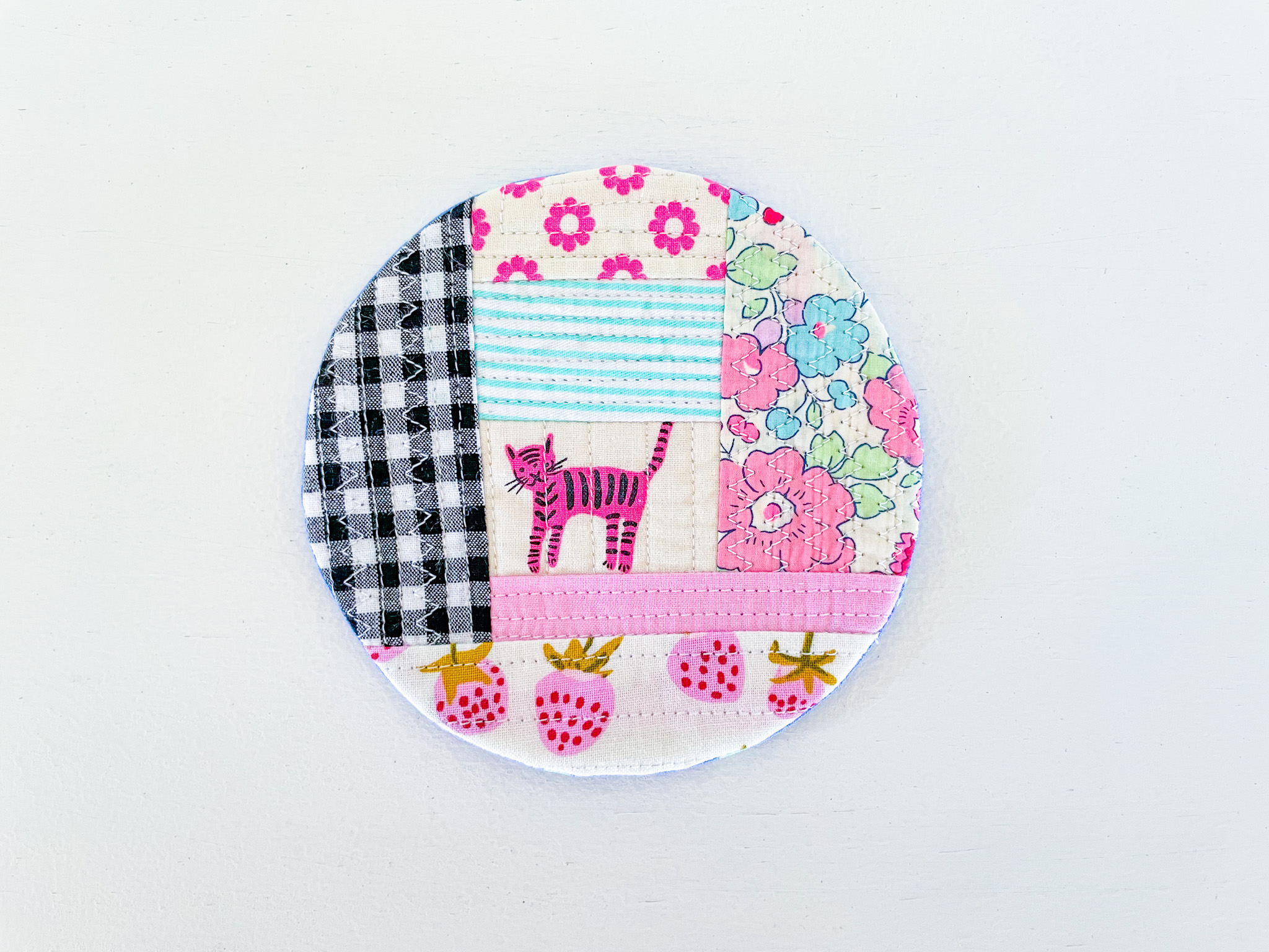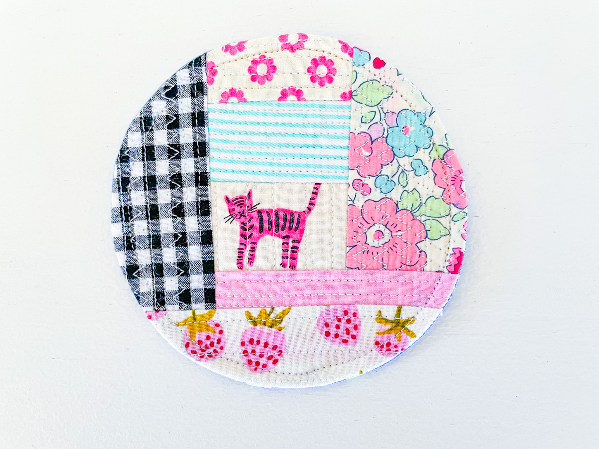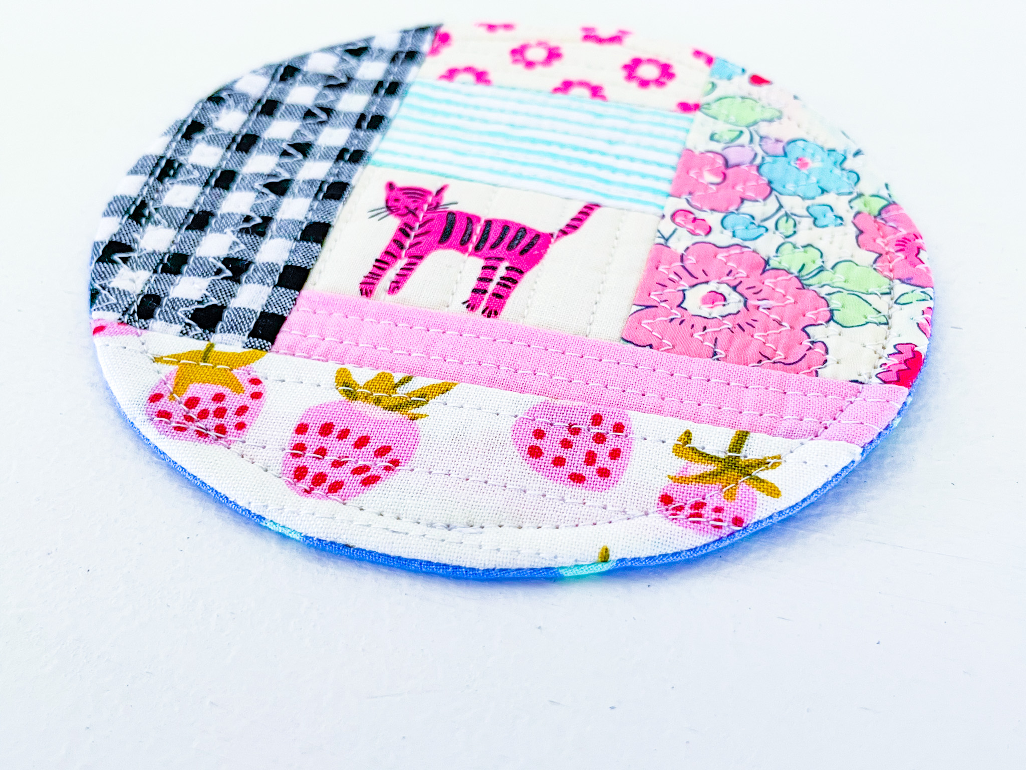 This round quilt-as-you-go coaster tutorial is a fun and beginner-friendly sewing project that turns fabric scraps into something both happy and practical. Using simple techniques and small pieces of fabric, these scrappy coasters come together quickly and are incredibly satisfying to make.