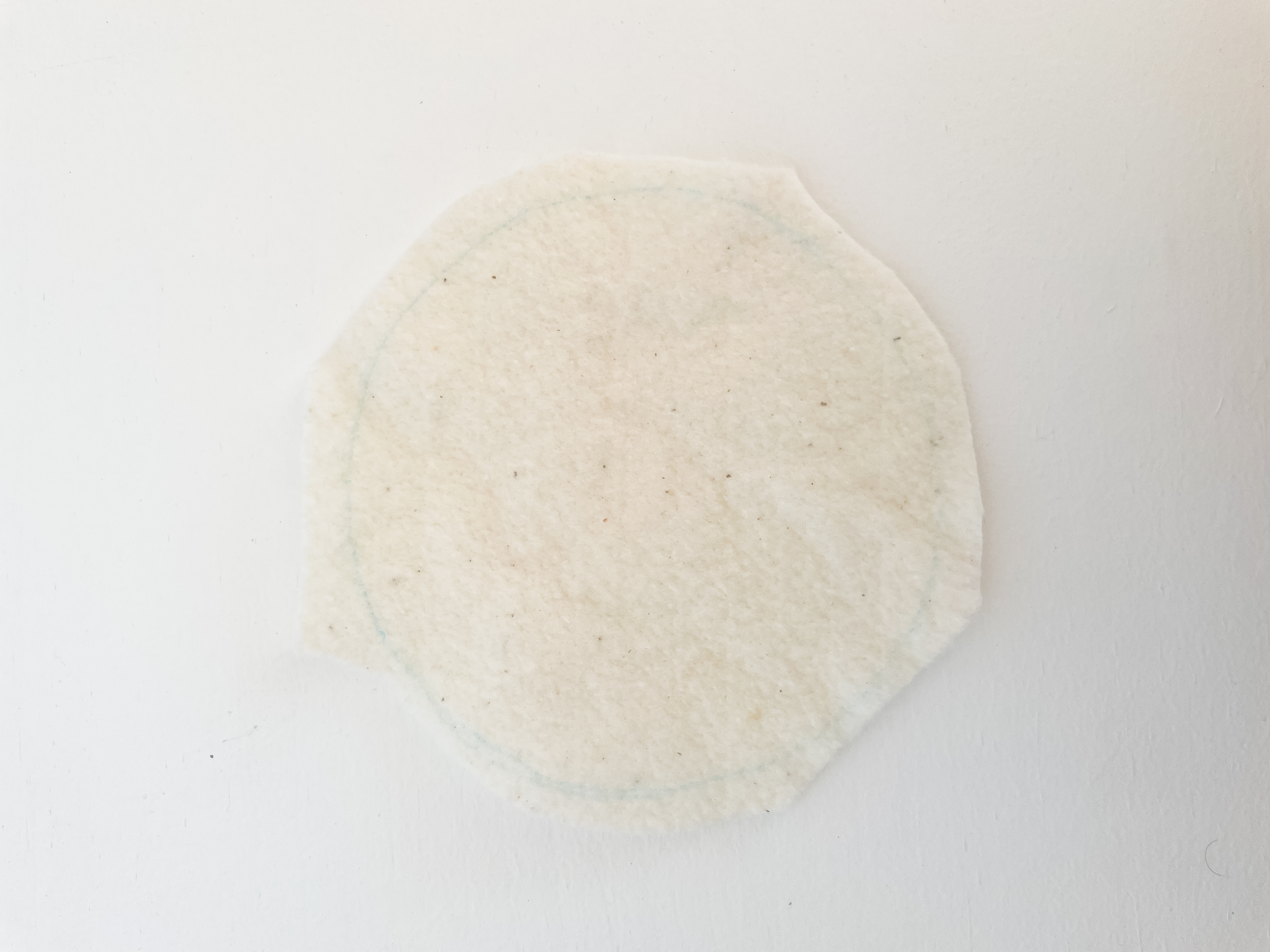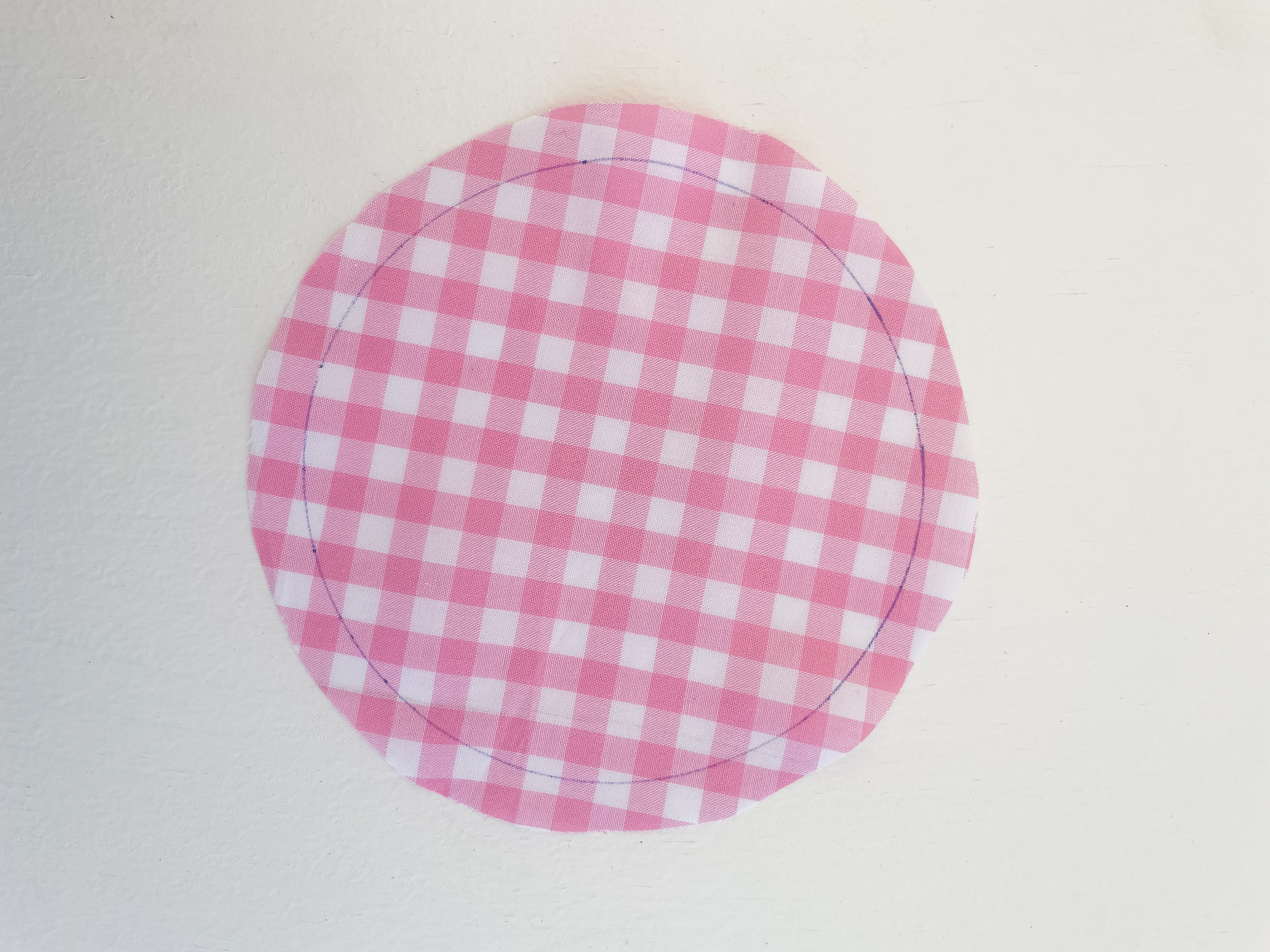 6. Take your backing fabric and trace around your circle template. Again, cut around your circle leaving a 3/8” seam allowance. NOT on the line, 3/8” from the outside edge of the circle.