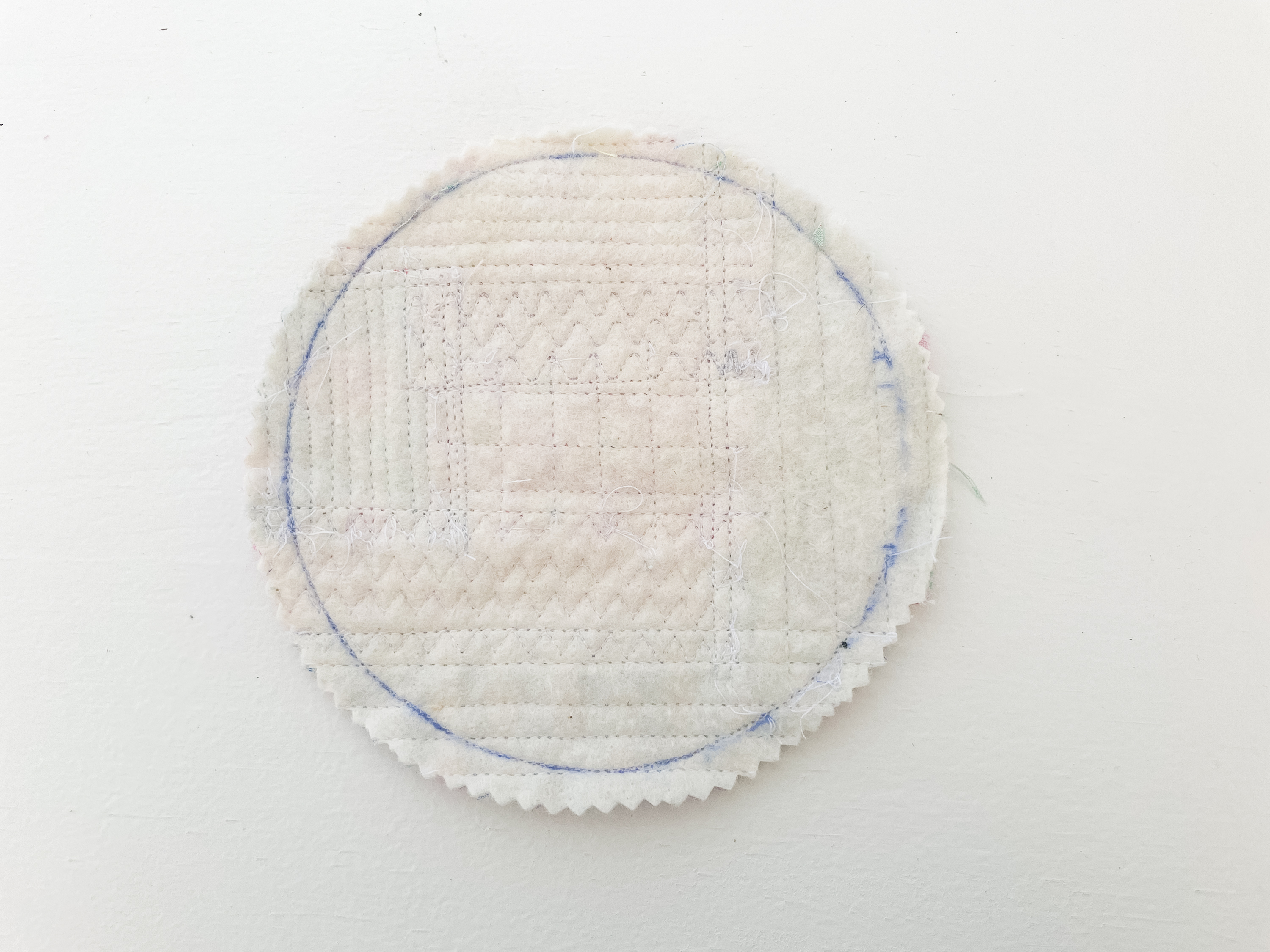 TIP: If you’re not a pro at sewing a circle (I’m certainly not perfect), make it super easy for yourself. Before you clip your circles together. Trace around your template once more onto the back of your coaster top. You then sew following this line. Super easy, and no wonky circles. Try it. It takes the stress out of sewing circles.