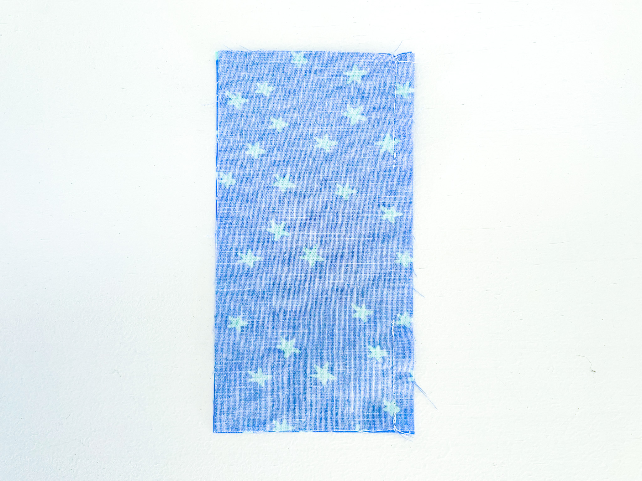 8. Using a ¼” seam allowance, sew along the long edge leaving a 2 ½” opening in the middle of the pieces. Back stitch at the beginning and end.