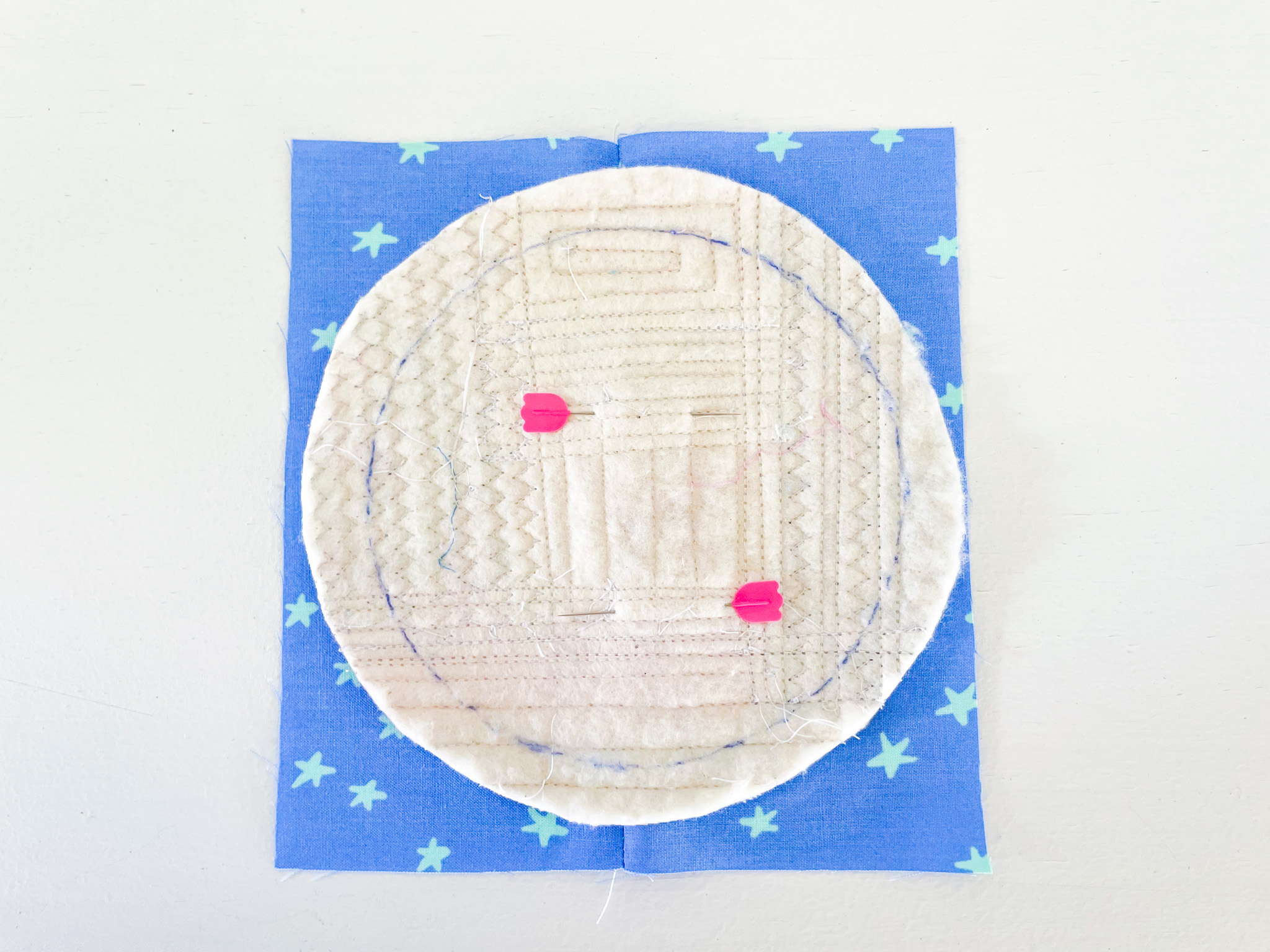 TIP: Sewing circles can be tricky (I’m definitely not a pro either!). To make it easier, trace your template onto the back of your coaster top before pinning. Then, simply sew along the line. It keeps your circle neat and takes the stress out of curved seams – no wonky circles here!