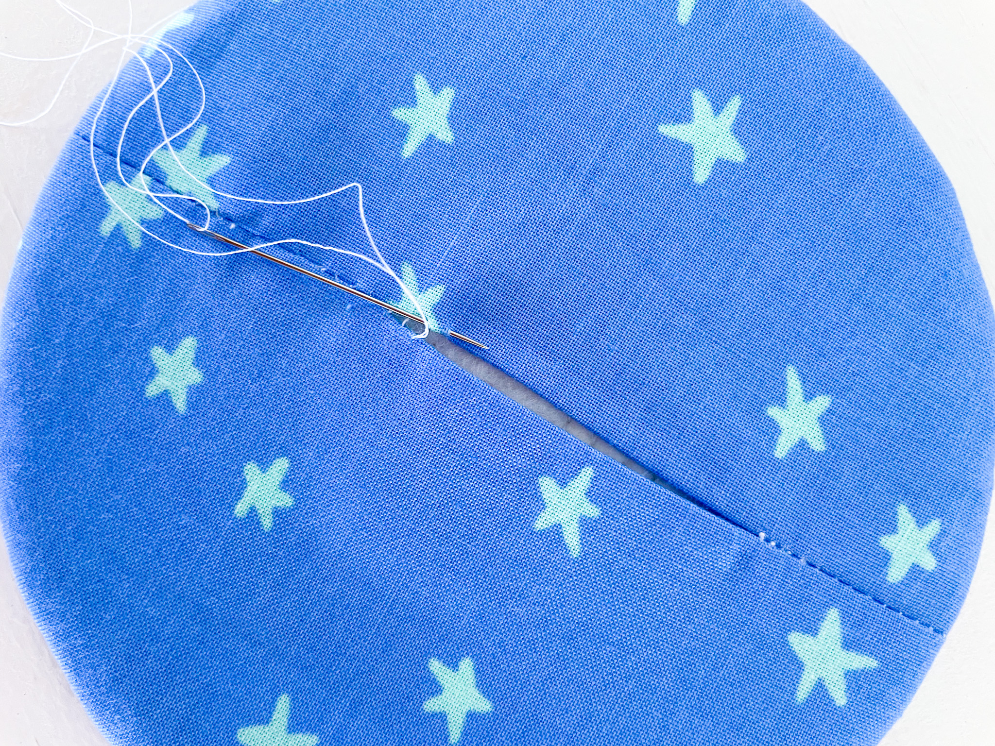 13. Turn your coaster right side out and gently push the seams out using a seam turner. This helps the circle edge lay nice and smooth. Press your coaster with a hot iron to set the shape.