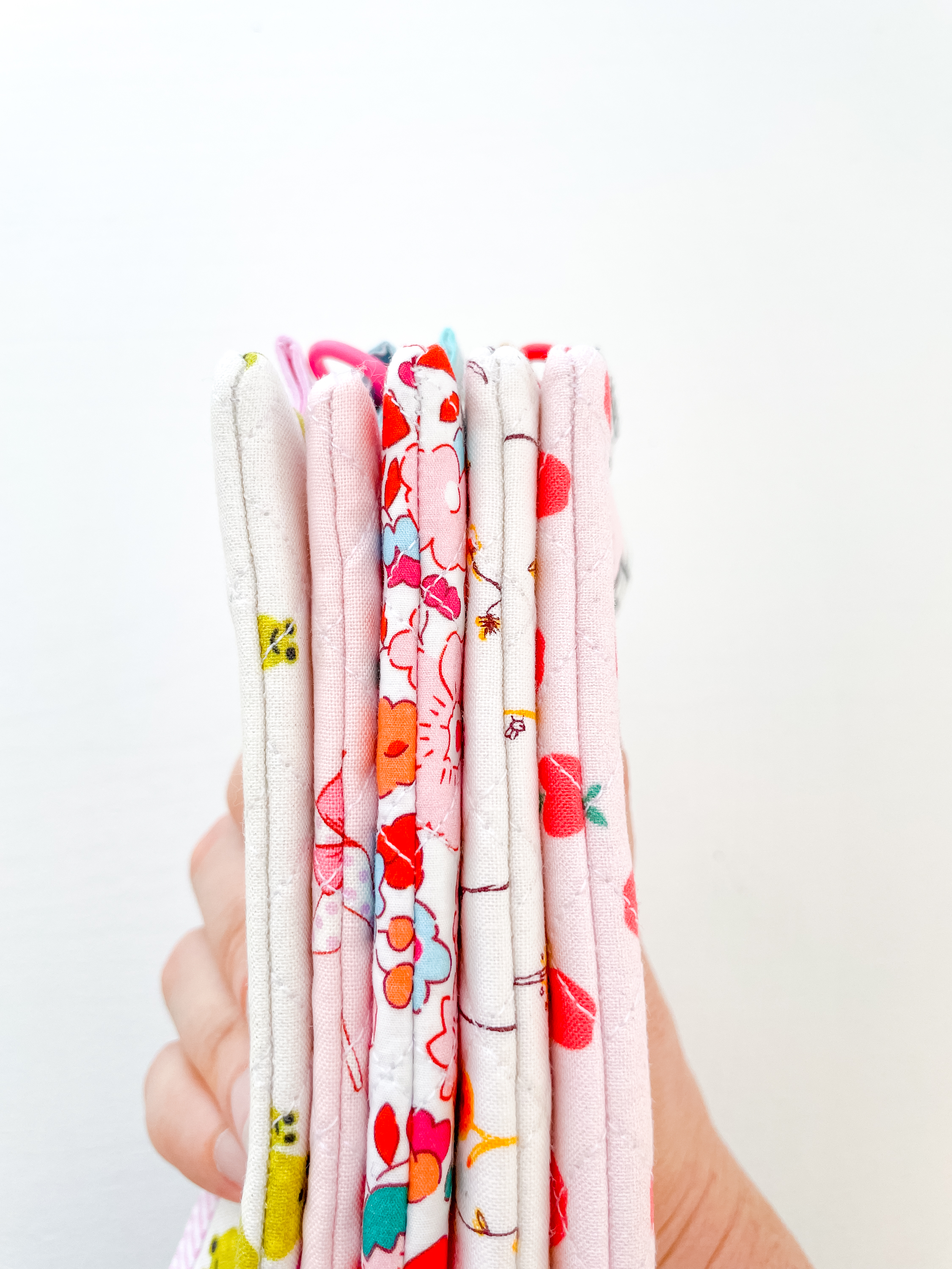 I love this pouch pattern so much that I decided to include 2 different sizes for you. Plus instructions on how to make both a quilted and non-quilted version. So if you need a super-fast, sweet gift you can skip the quilting part and should very easily be able to whip one of these up in half an hour or less.