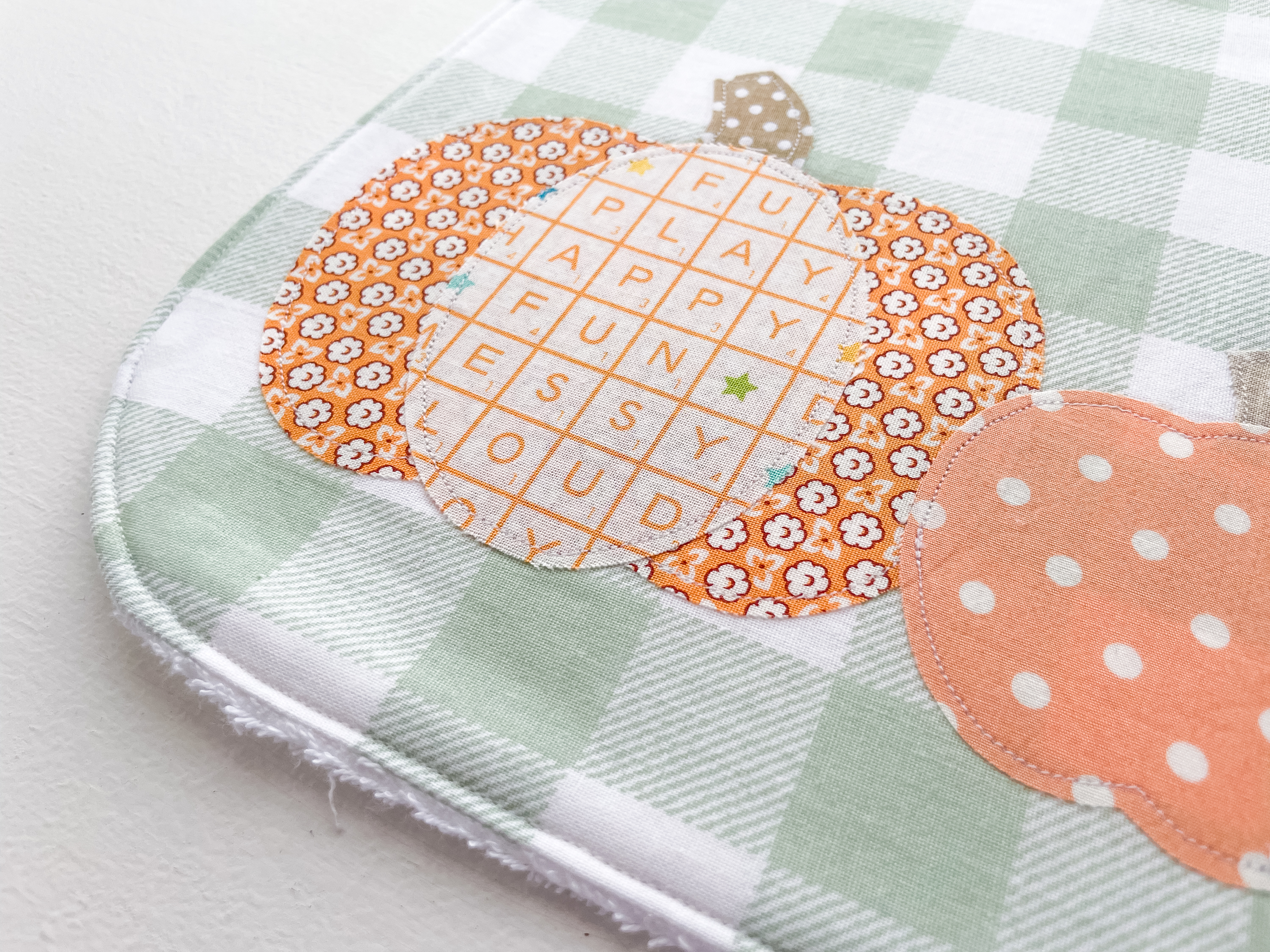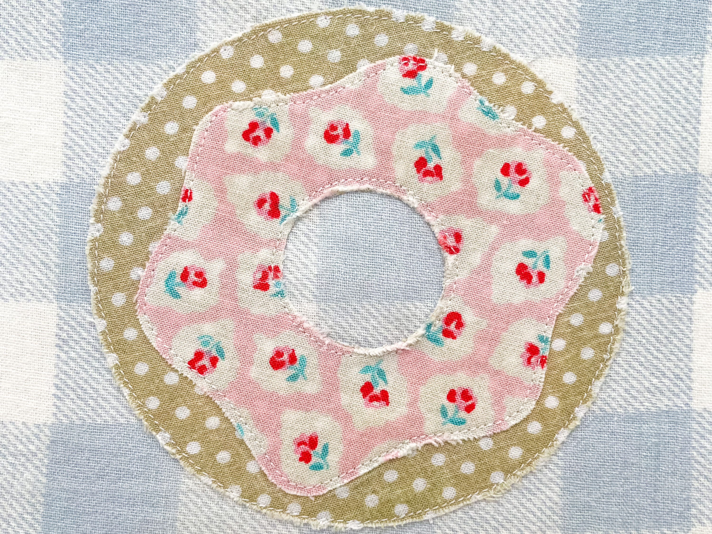 But I’m here to put your fears at ease because even after a lot of washing the fraying that comes with raw edge appliqué is very minimal, if at all. As you can see with the doughnut that’s on a bib, I made my daughter.