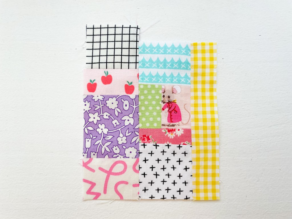 This tutorial shows you how to do scrappy piecing using 90-degree angles/or by squaring your fabric. There are also very similar methods that use curves or wonky piecing without any squaring of the fabric.