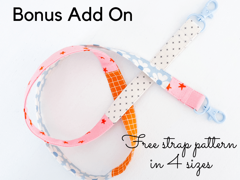 But I couldn’t stop there either, with a simple hack of adding D-rings to the pouch tabs and a shoulder strap, you can easily convert your pouch to a cross-body bag. Yep you heard me! I’m also giving you a BONUS FREE PATTERN for a non-adjustable strap in 4 sizes, with instructions so you can use a variety of different-sized bag hardware. A comprehensive strap-making tutorial that’s completely beginner friendly and can easily be applied to any bag or pouch your heart desires.