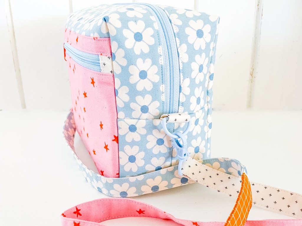 It comes in 3 sizes and two styles – Double Zip featuring an external side zip pocket and Plain – no side pocket because we are keeping it simple, yet fast and fun. All Three sizes are roomy and can be either quilted or non-quilted. Yay! The small one is perfect for all those tiny things that get lost in your bag and the larger one makes a great cross-body bag or even a toiletry bag.