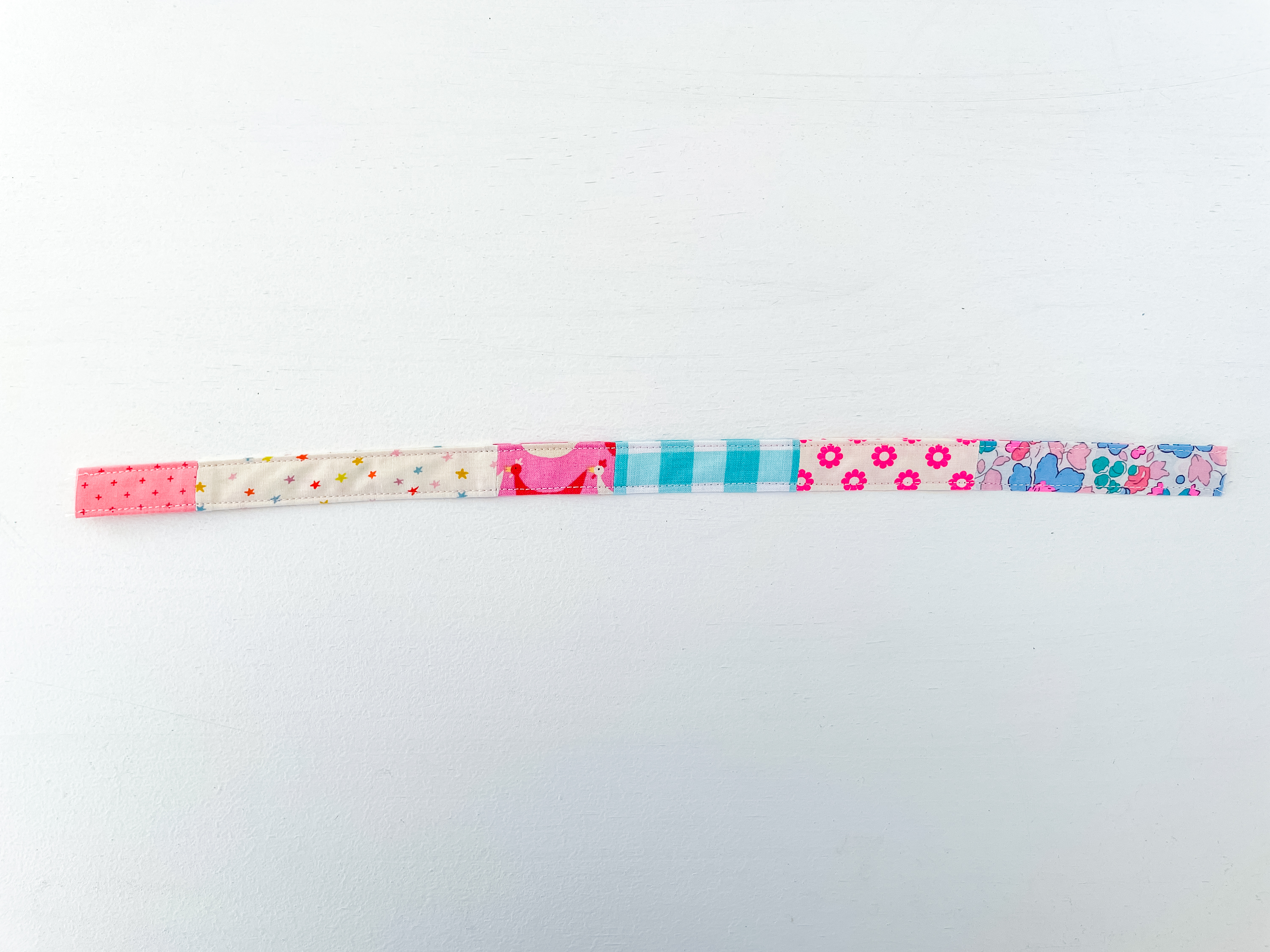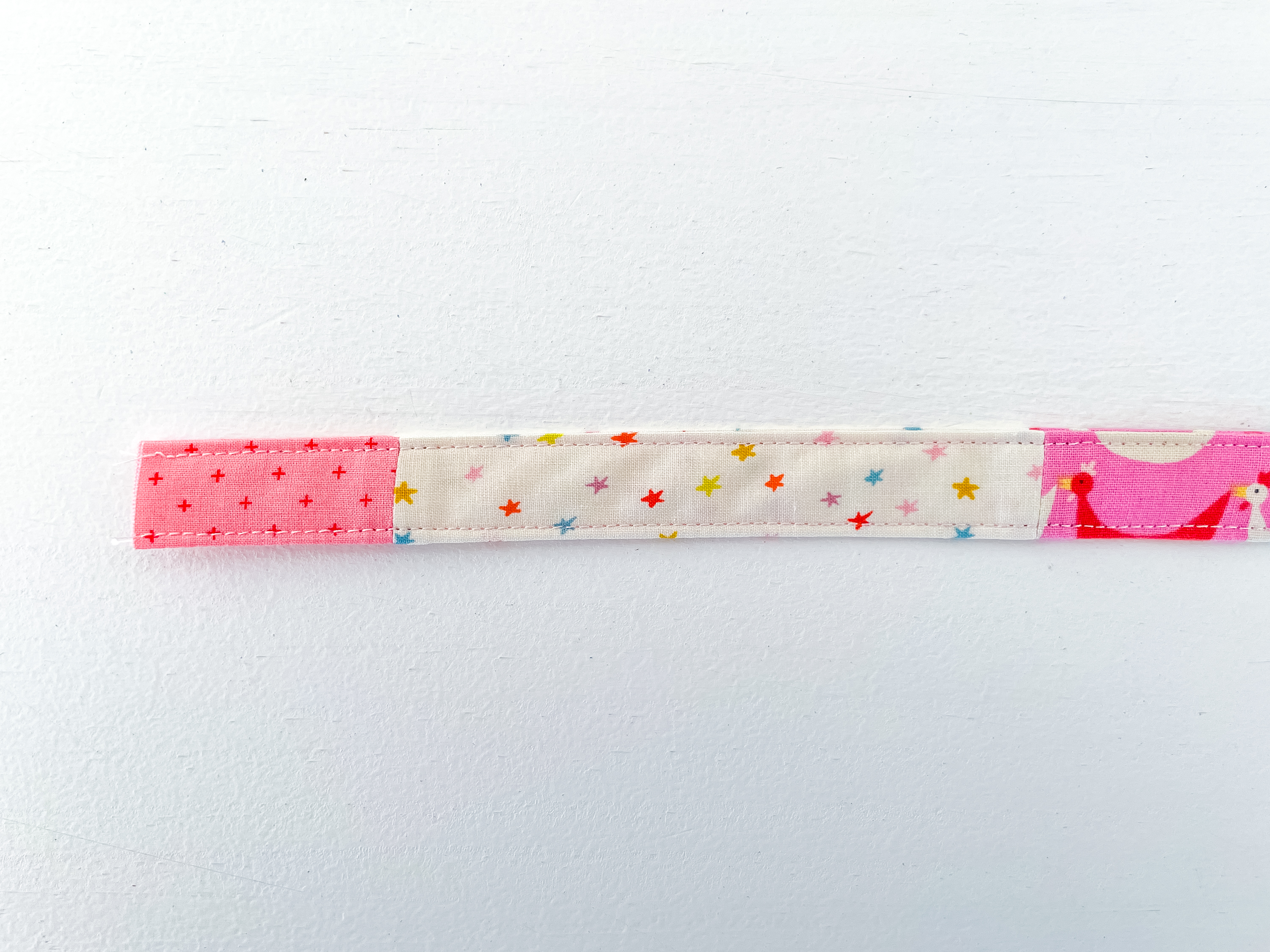 - One piece of fabric 3″ wide/high x 15½” long or scraps that are 3″ high/wide x various lengths sewn together to make one piece that is 3″ x 15½”.