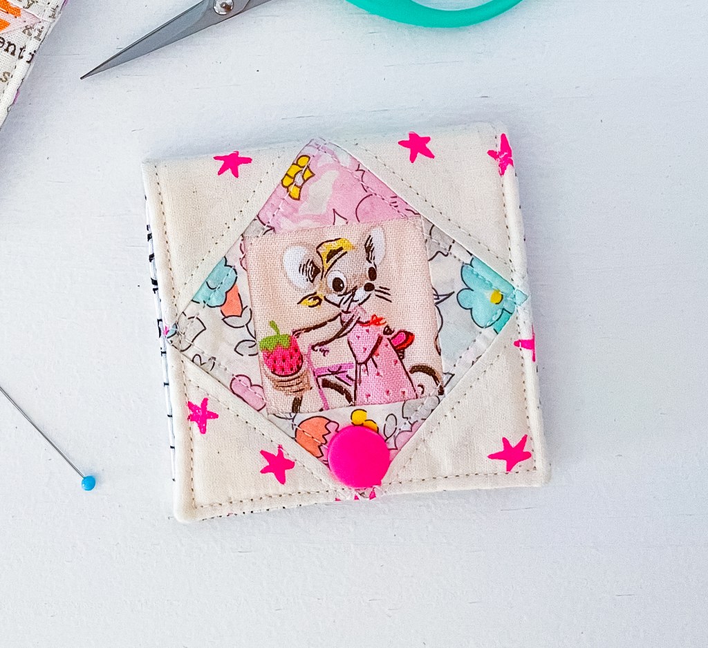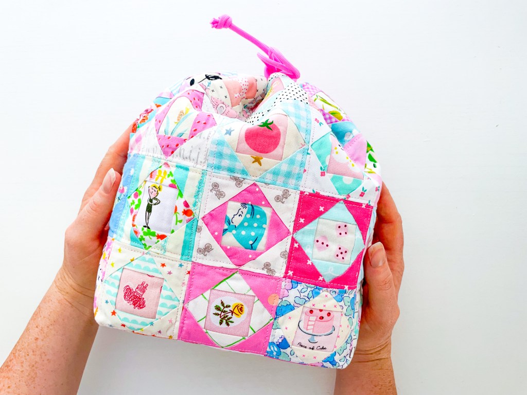 Just two blocks are enough to make the Itty Bitty Needlebook, and a handful more work beautifully in bags, pouches, and other scrappy projects where fabric placement really gets to shine. They’re perfect for the Patchwork Drawstring Bag, especially since none of your precious prints get chopped up in the process.